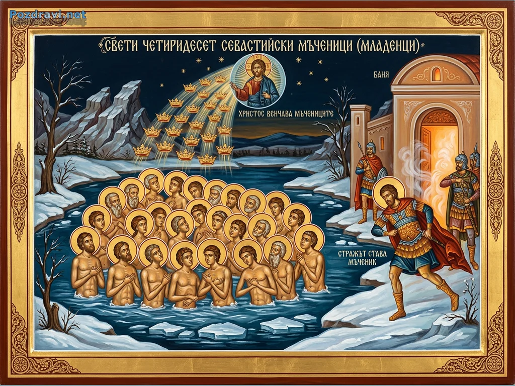 Ключови фрази: Севастийски мъченици икона, Православна икона мъченици, Четиридесет мъченици Севастия, Икона Христос венци, Зимна икона мъченичество