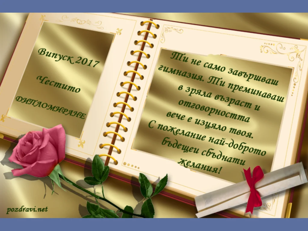Ключови фрази: злато диплома роза рамка пожелание