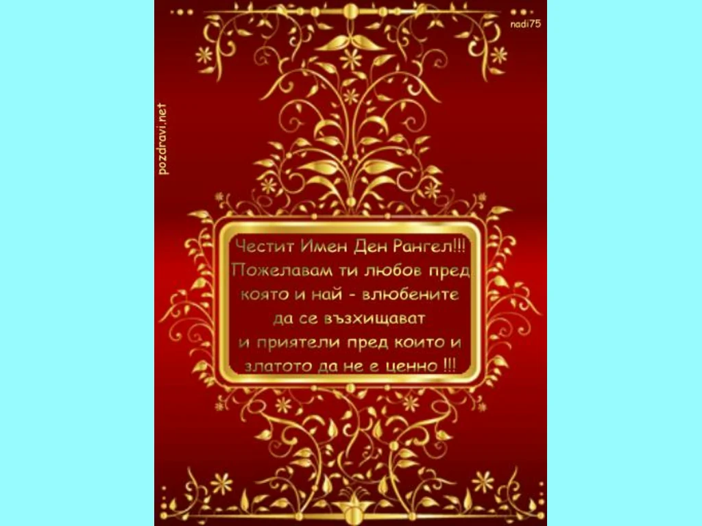 Ключови фрази: Имен ден поздрав Рангел картичка орнаменти червено поздрав пожелание любов приятели