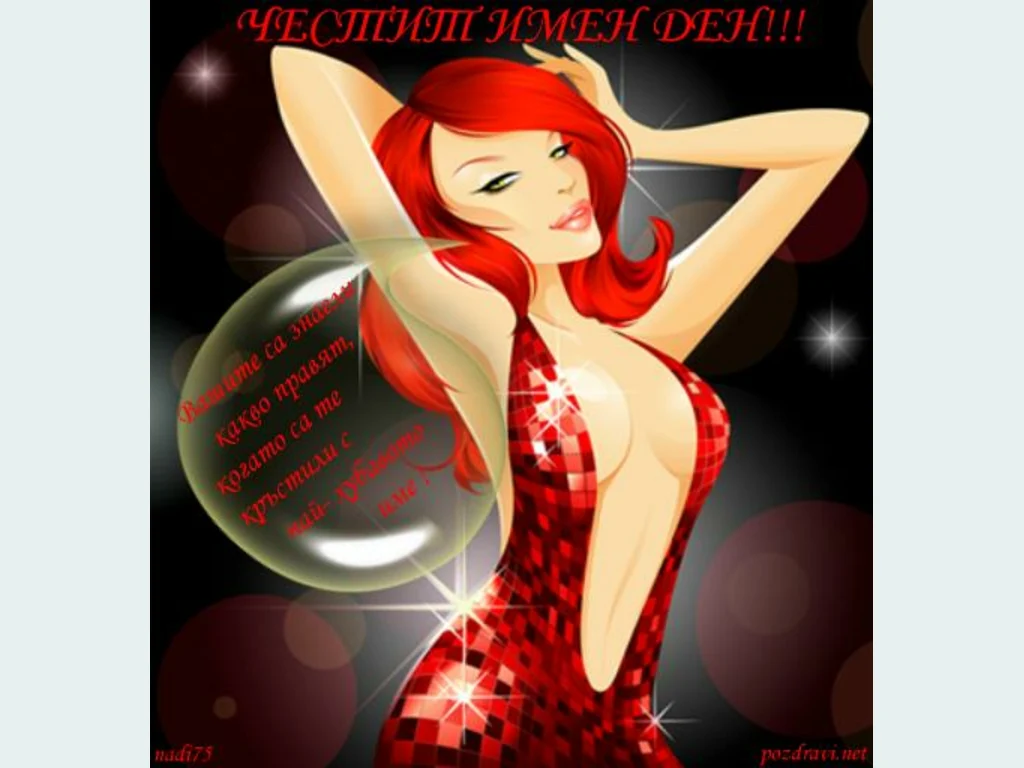 Ключови фрази: Красавица балони червено секси рокля деколте пичка имен ден поздрави картичка поздрави пожелание Именници Ангел Ангелина Архангел Гаври Еми Емилия Емилияна Емилиян Лина Мила Милен Мильо Михаела Михаил Пламен Пламена Рада Радка Радивой Радко Радослав Радослава Радостин Радостина Райко Райна Райчо Рангел Рафаил Рая Руси Руска Серафим Руслан
