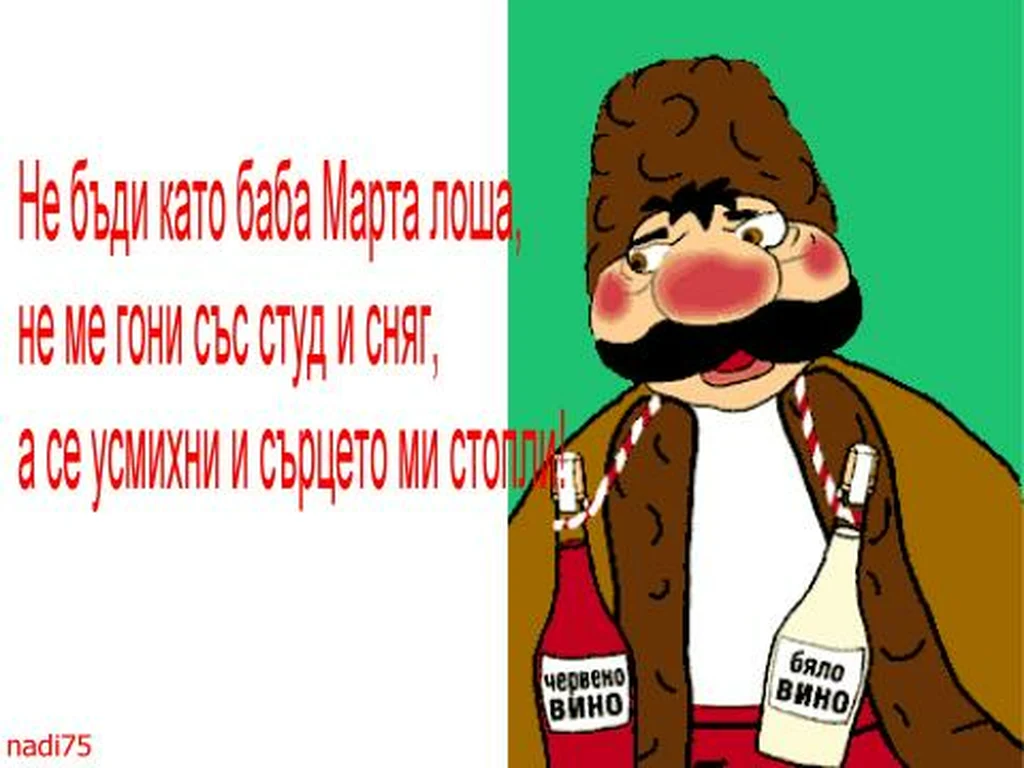 Не бъди като баба Марта лоша,не ме гони със студ и сняг,а се усмихни и сърцето ми стопли!