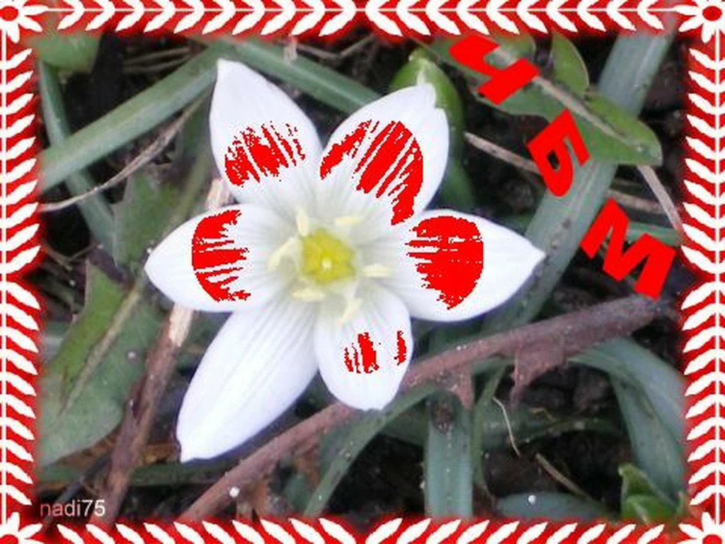 Ключови фрази: Картичка бяло червено пролетно цвете начало нов живот радост щастие нежно ухание любов поздрави пожелание празник баба Марта