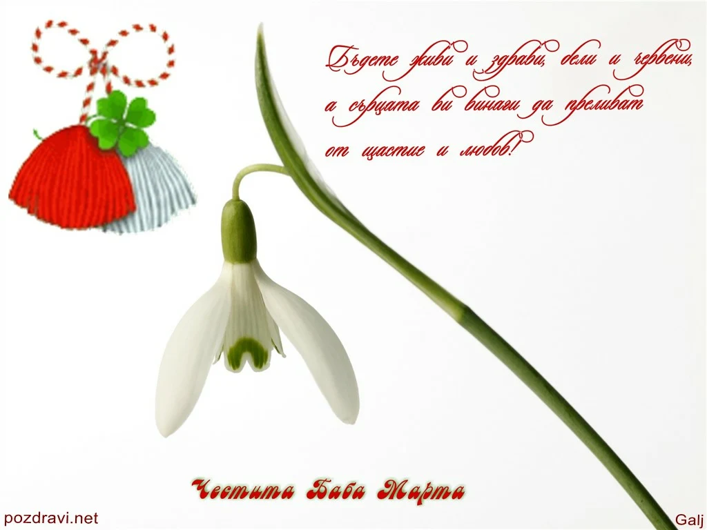 Ключови фрази: Картичка пожелание поздрави любов пролет честита баба марта мили емигранти българско родно кокиче традиция единствена света спомен дома надежда