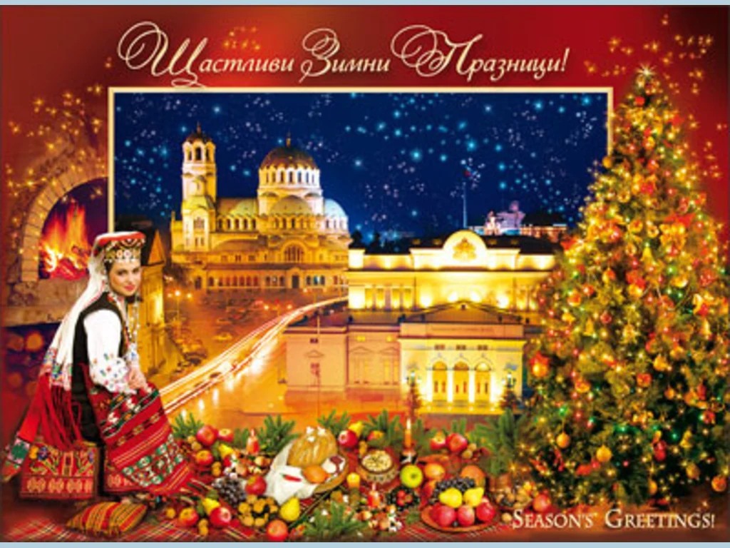 Ключови фрази: Бъдни вечер постни ястия седем девет красива трапеза уют семеен празник картичка звездно небе църква света София девойка българска традиционна носия коледна елха украса