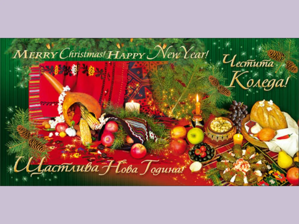 Ключови фрази: Картичка Бог Исус звезда дева Мария младенец богата украсена трапеза горяща свещ седем девет единадесет гозби поздрави пожелания