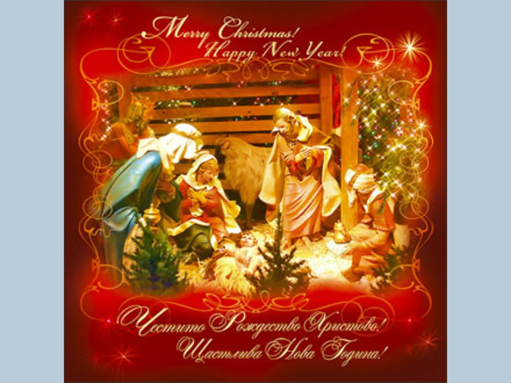 Ключови фрази: Честито Рождество Христово младенец дева мария майка баща Йосиф коледна празнична украса спасител роден