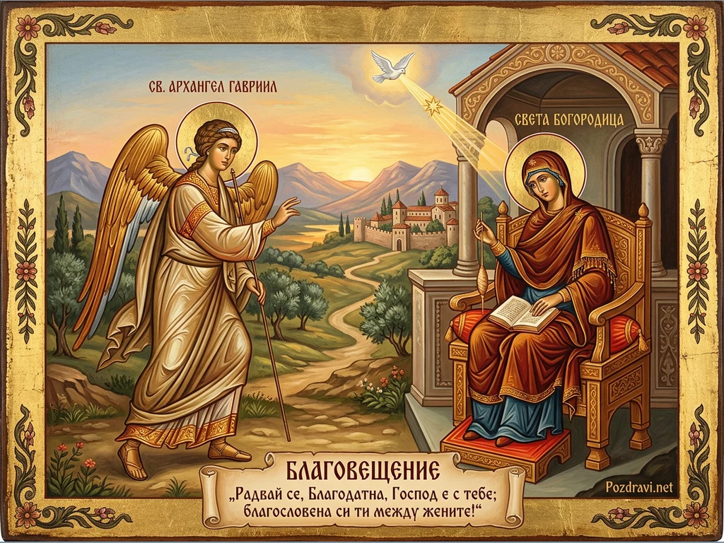 Ключови фрази: Благовещение икона, Архангел Гавриил, Света Богородица, Православна икона, Религиозна живопис
