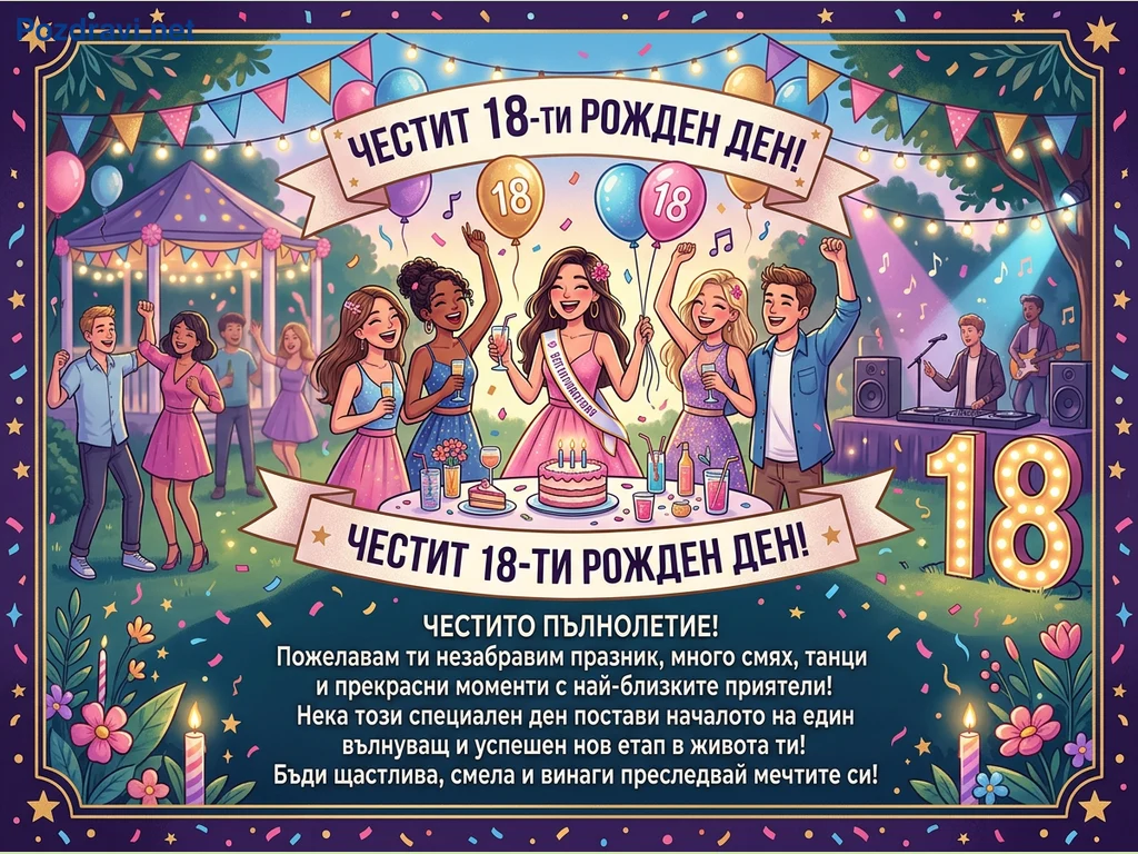Ключови фрази: 18-ти рожден ден, поздравителна картичка, парти за пълнолетие, честит рожден ден, младежко тържество