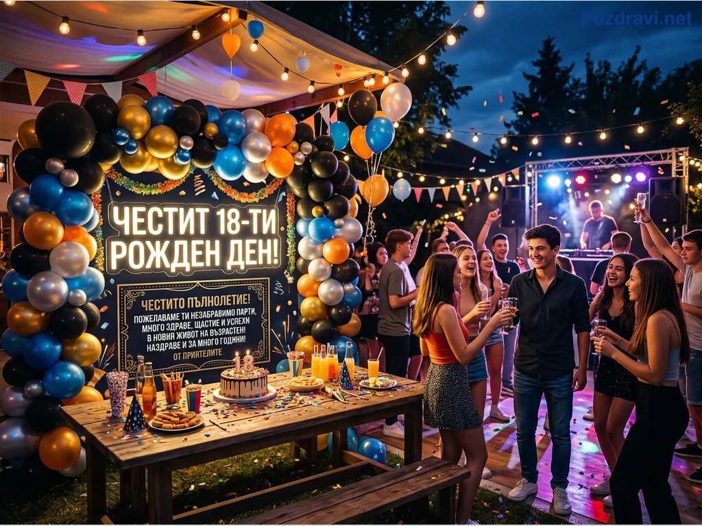 Ключови фрази: 18-ти рожден ден, Празник на открито, Младежко парти, Декорация балони, DJ парти