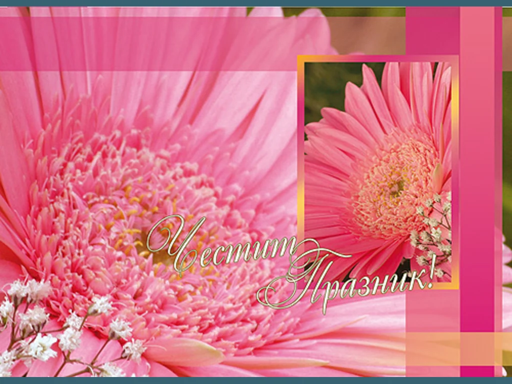 Ключови фрази: Много стилна красива изискана картичка букет пожелание любов поздрави честит празник послание розов гербер