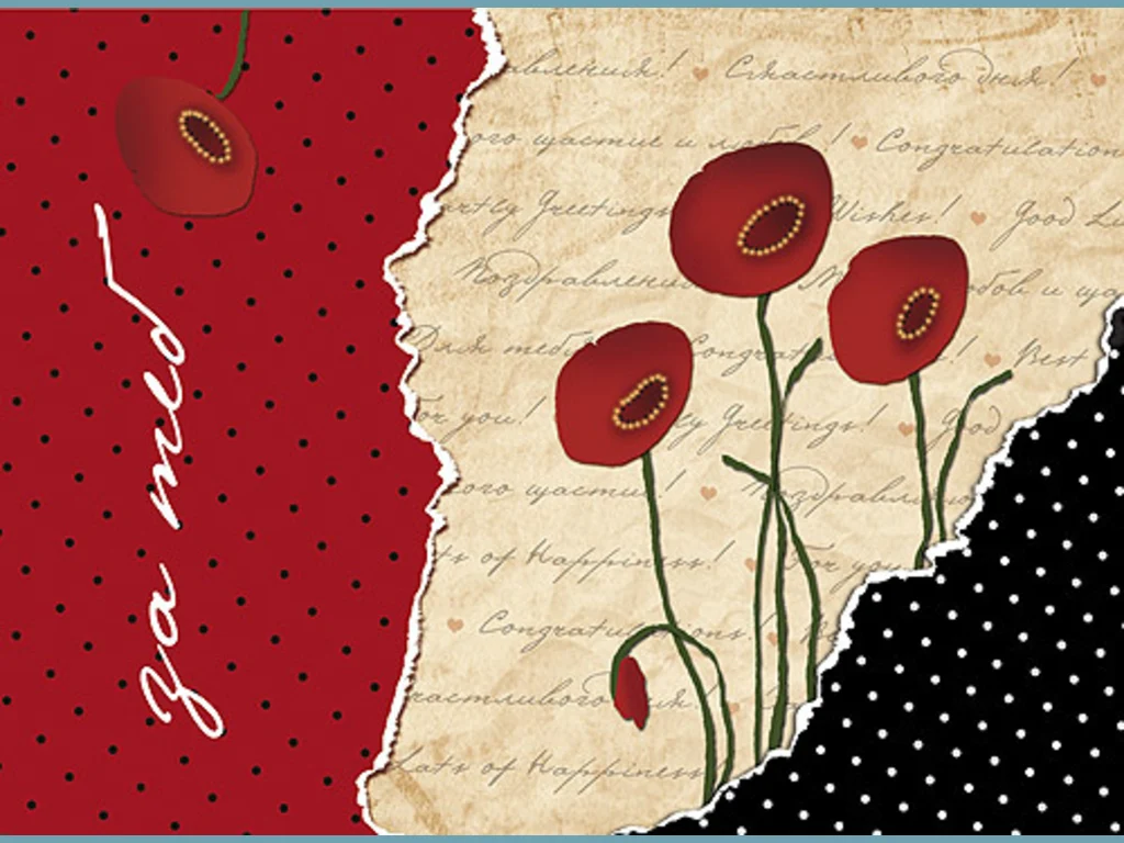 Ключови фрази: Картичка рисувана мак цветя любов поздрави пажелание обич щастие красота