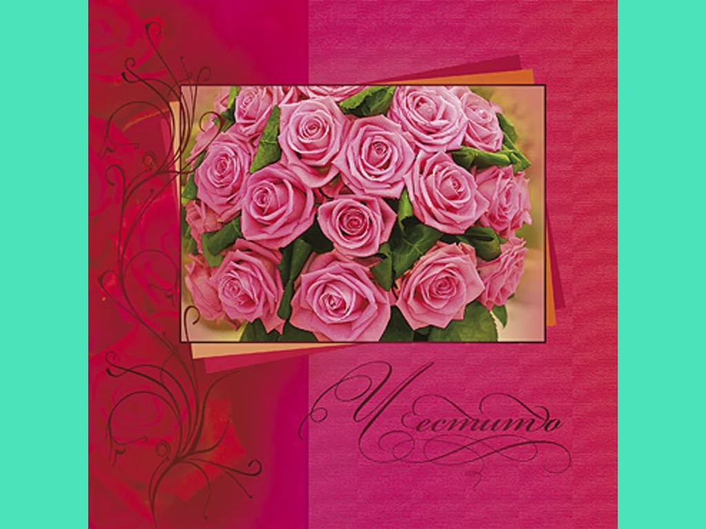 Ключови фрази: Картичка стилна изискана елегантност вишнево розови рози букет честито поздрави пожелание любов здраве успехи щастие