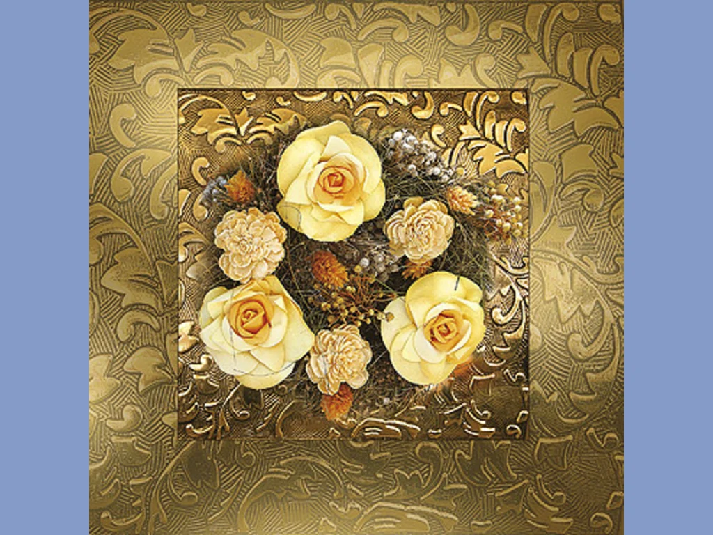 Ключови фрази: Картичка жълто златиста поздрави пожелание любов мъж стилна изискана честит празник екибана сухи цветя рози