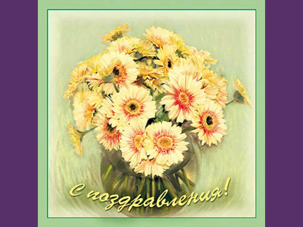 Ключови фрази: Картичка поздрави ваза красиви гербери рисувана картина.