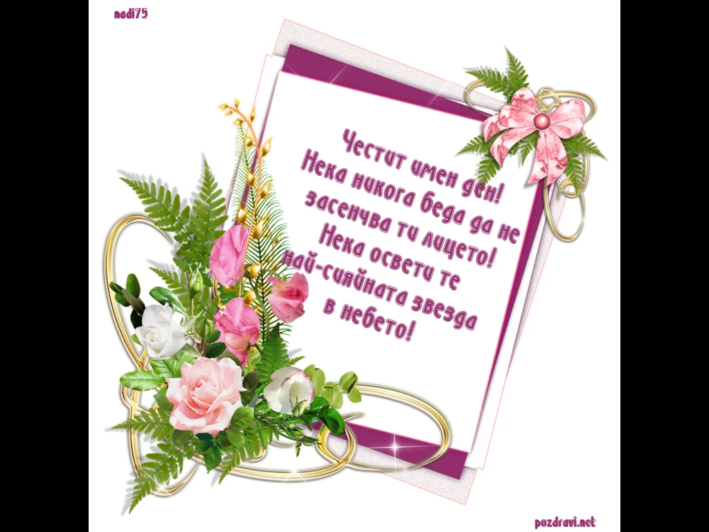 Ключови фрази: Цветница Роза букет разцъфнали звездички панделка папрат зеленина клонки красота картичка поздрави пожелание празник имен ден всички носещи имена цветя