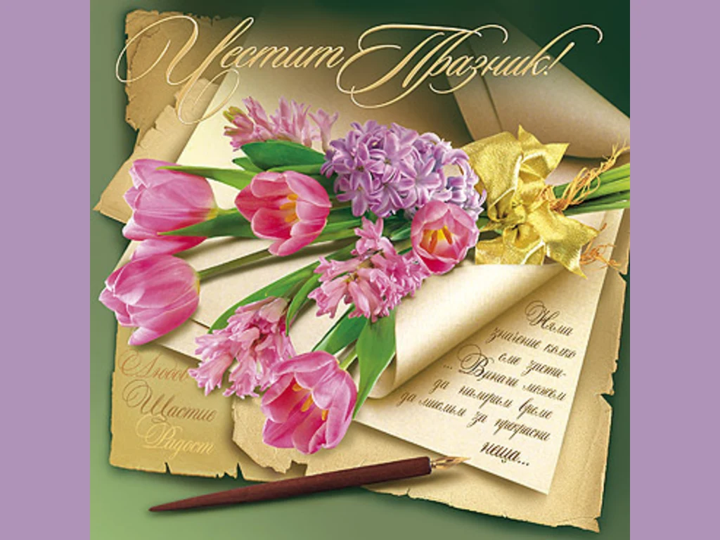 Ключови фрази: Картичка пожелание поздрави Любов Щастие Радост букет пролетни цветя писание послание писалка пожелание Лалета Кремени Зюмбюли всички празнуващи