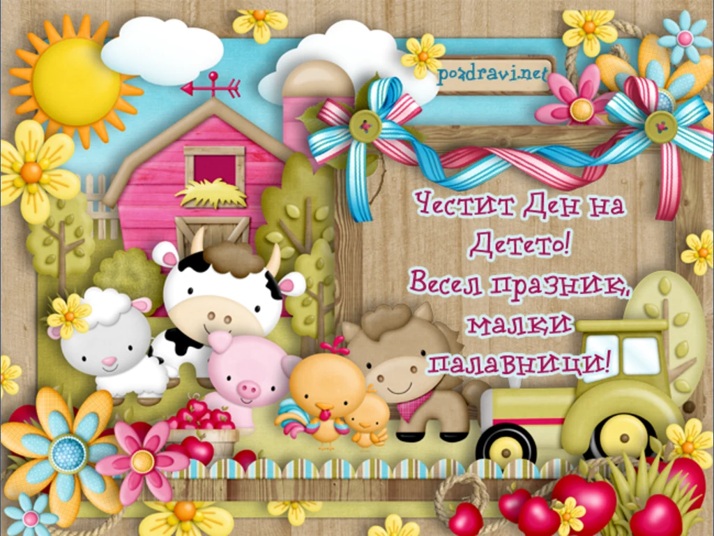 Картичка за деня на детето със следното пожелание: