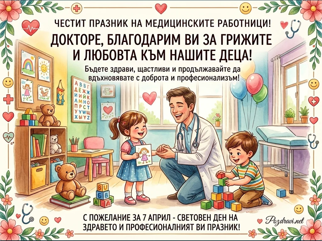 Тази картичка е идеален начин да се изрази благодарност и признателност към лекарите педиатри по случай техния професионален празник.