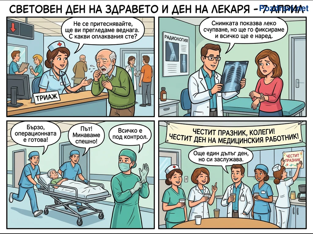 Ключови фрази: Ден на здравето, Ден на лекаря, Медицински работници, Болница комикс, 7 април празник