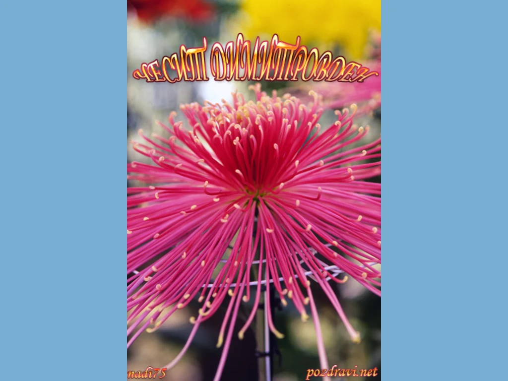 Ключови фрази: Картичка поздрави пожелание цвете циклама нежност красота празнуват Димитър Димитрина Деметра Димо Дима Димка Димитричка Димчо Димана Драган Митко Митка Митра Митрана Мита
