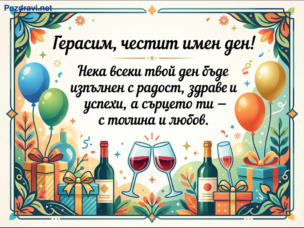 Ключови фрази: Имен ден Герасим, Поздравителна картичка, Честит имен ден, Празнична картичка, Пожелание за имен ден