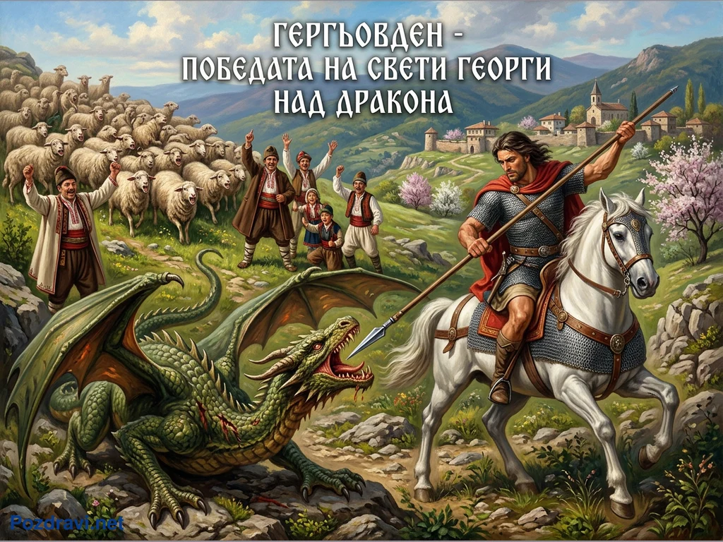 Ключови фрази: Гергьовден, Свети Георги дракон, български празник, победа над злото, народни носии