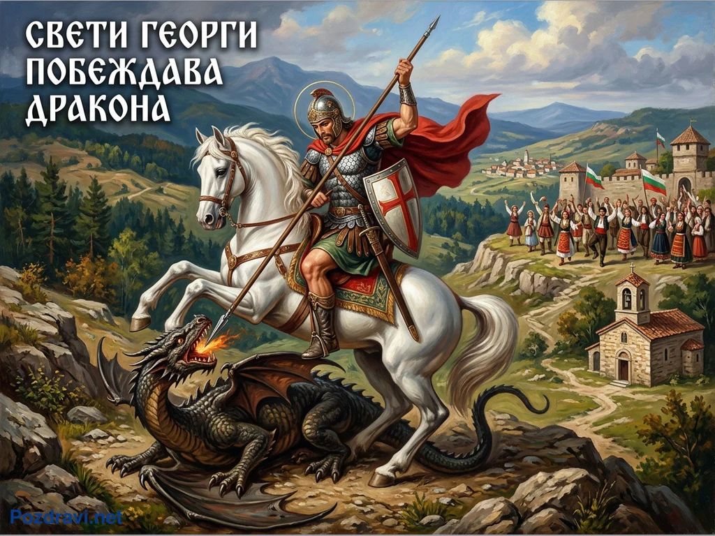 Ключови фрази: Свети Георги, победа над дракона, Гергьовден, български празник, народни носии
