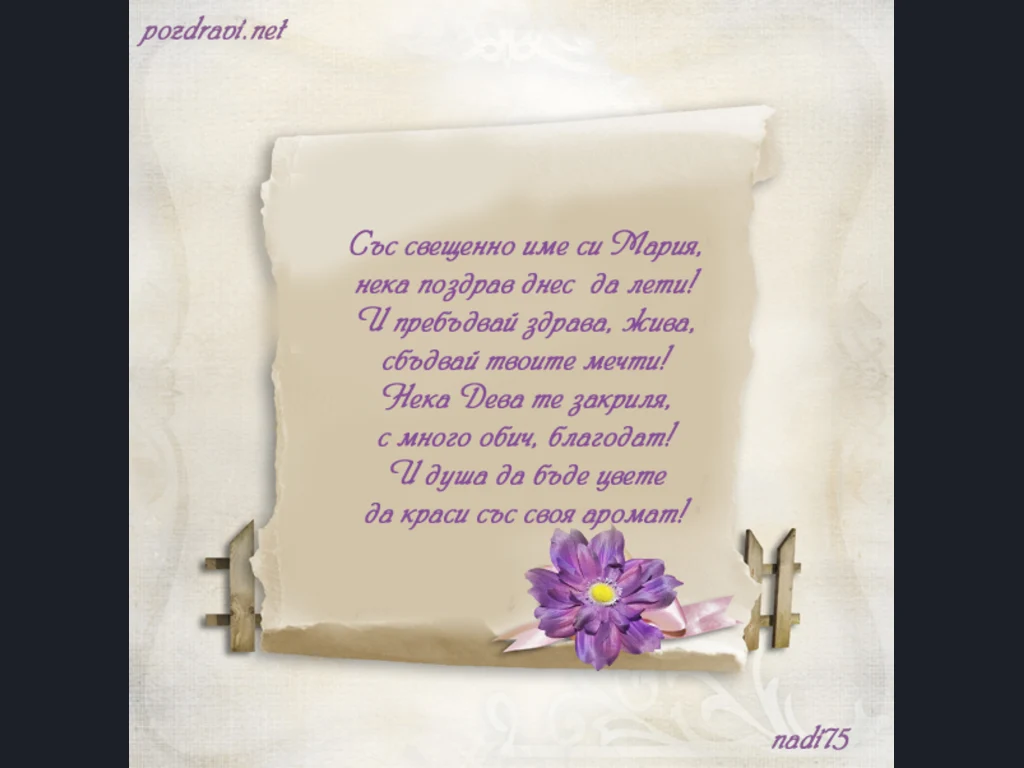 Картичка за имен ден на Мария Богородица