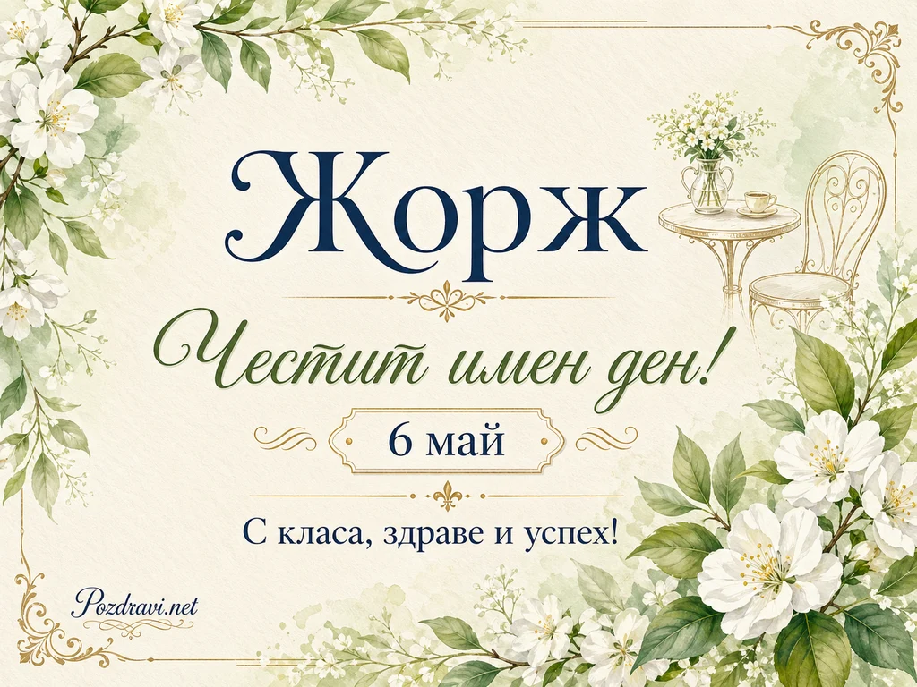 Ключови фрази: имен ден Жорж 6 май, Жорж Гергьовден цветя, честит имен ден Жорж, 6 май Жорж елегантна картичка