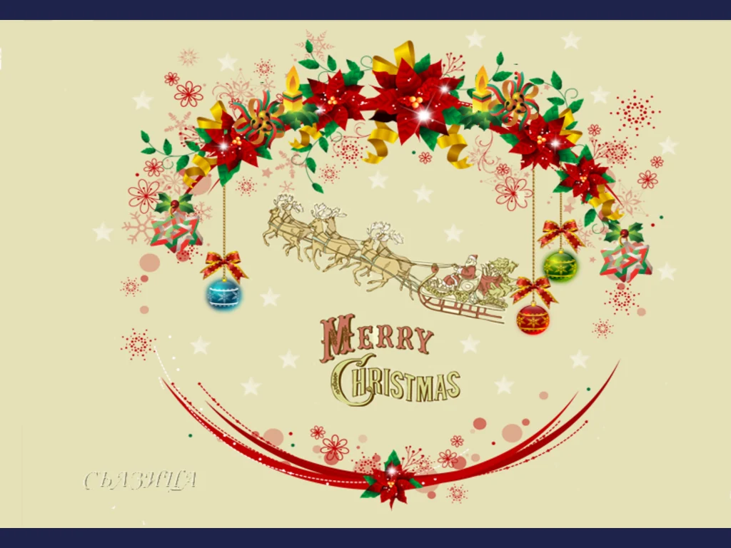 Ключови фрази: Дядо Коледа шейна подаръци елени украса играчки Коледни звезди