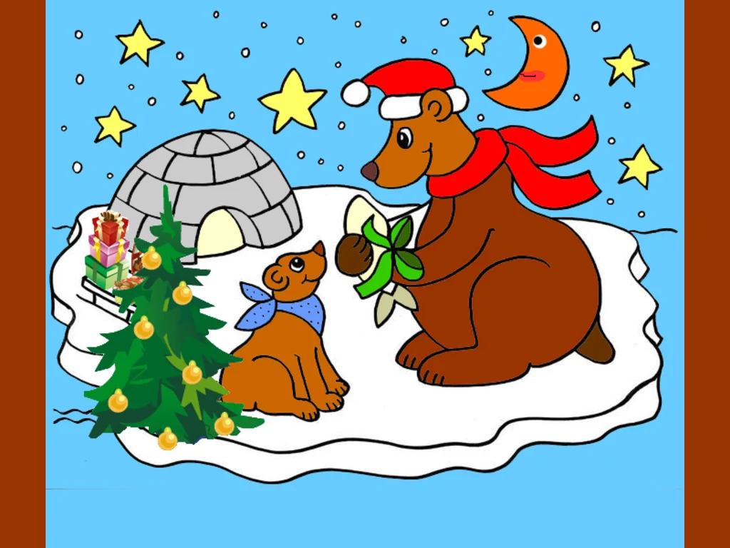 Ключови фрази: Новогодишна картичка очакване празник кученце мечок звезди снежинки елха подаръци
