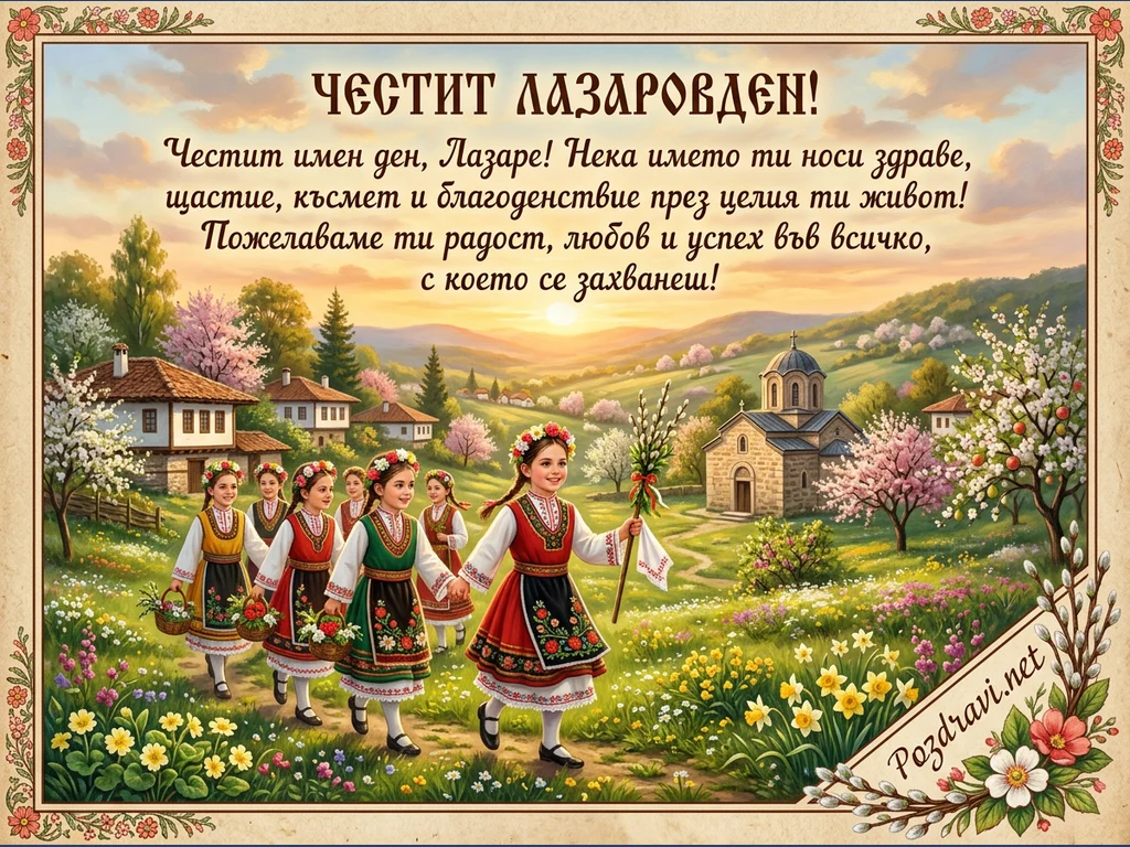 Ключови фрази: Лазаровден картичка, български традиции, пролетни празници, народни носии, честит Лазаровден