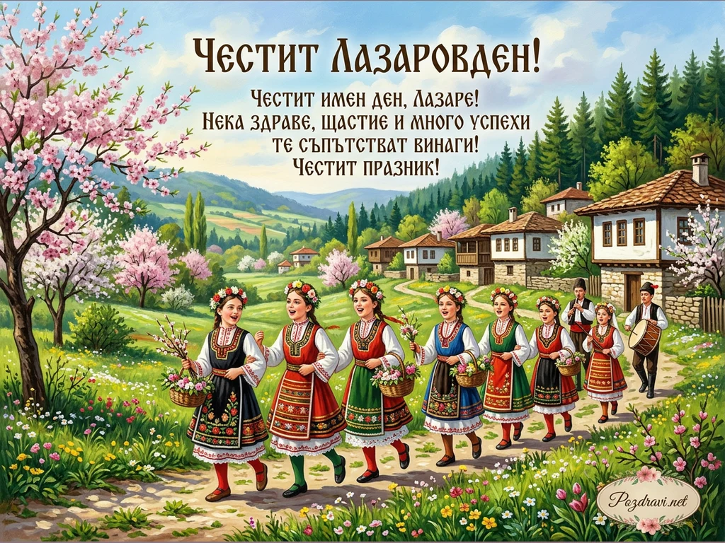 Ключови фрази: Лазаровден картичка, български обичаи, лазарки носии, пролетен празник, народни традиции