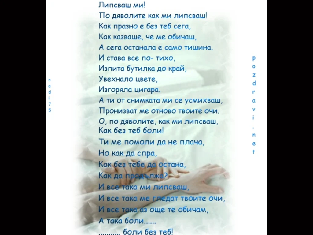 Ключови фрази: любов, раздяла, тъга, липса, липсваш, ми, нега, сдобряване