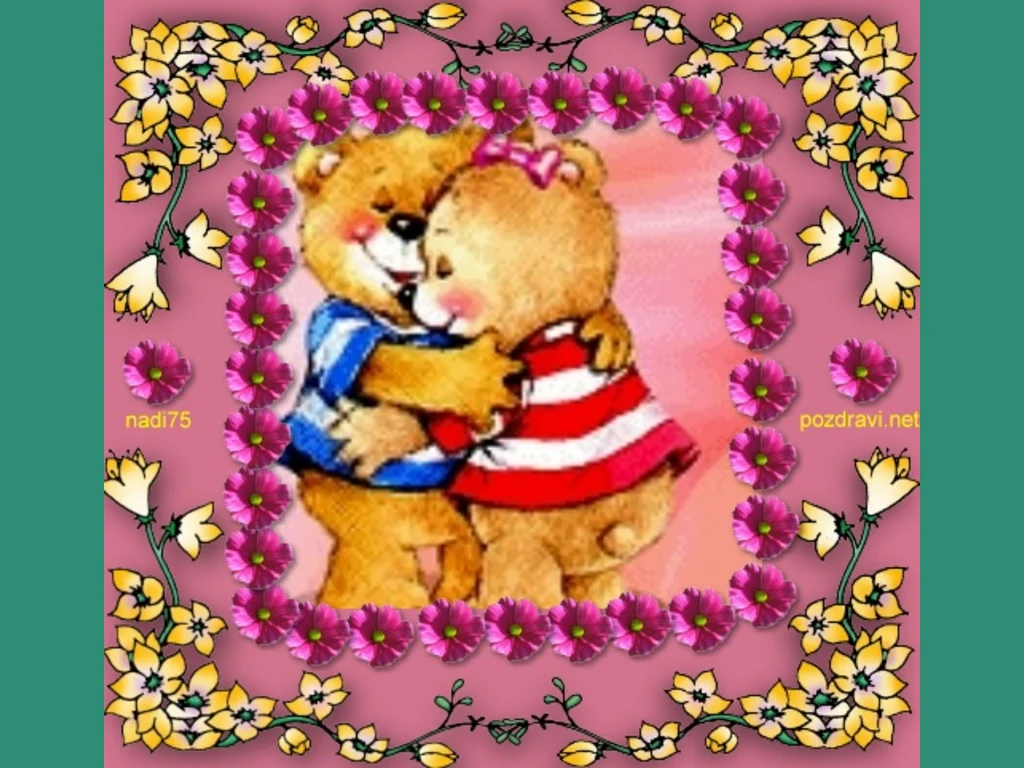 Ключови фрази: Картичка цветна красива две влюбени мечета прегърнати щастливи любов секс обич любим гадже агапе