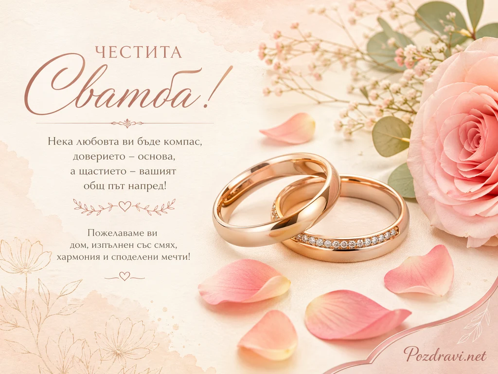 Надписът на картичката гласи точно: 'ЧЕСТИТА Сватба!'.