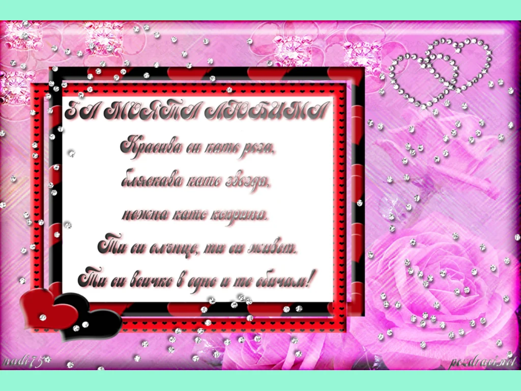 Ключови фрази: Картичка рози любима две сърчица диаманти обеснение нежна звезда коприна слънце живот любов безкрайна