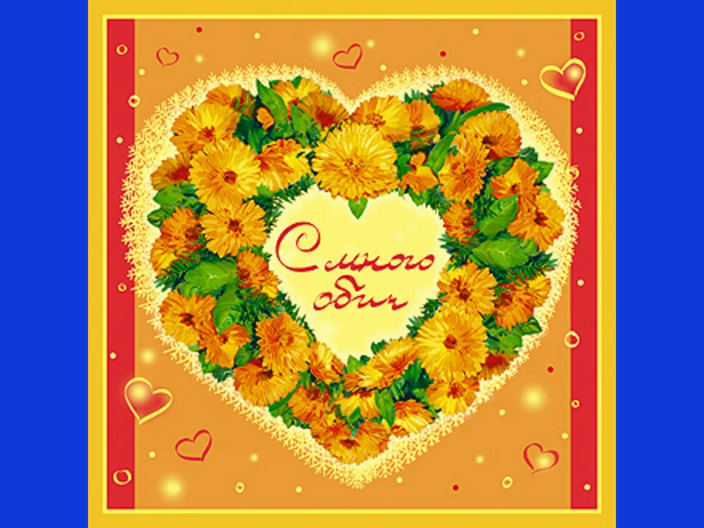 Ключови фрази: Картичка сърчица цветя невени латинки много обич букет любов