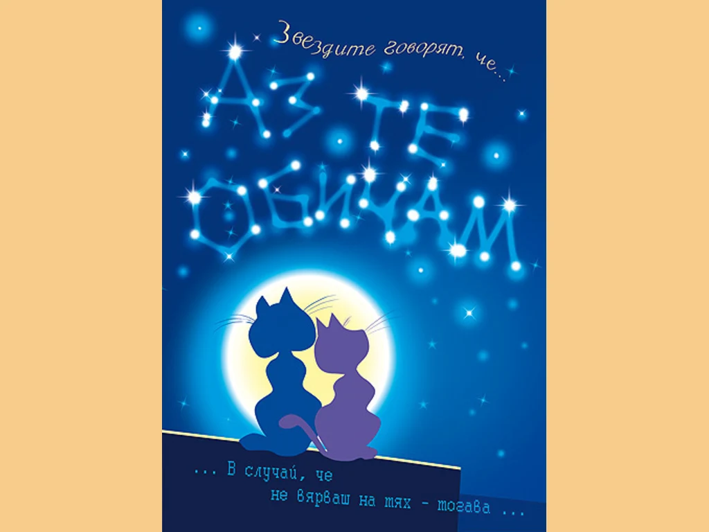 Ключови фрази: Картичка луна звезди говорят обичам две красиви котета признание любов