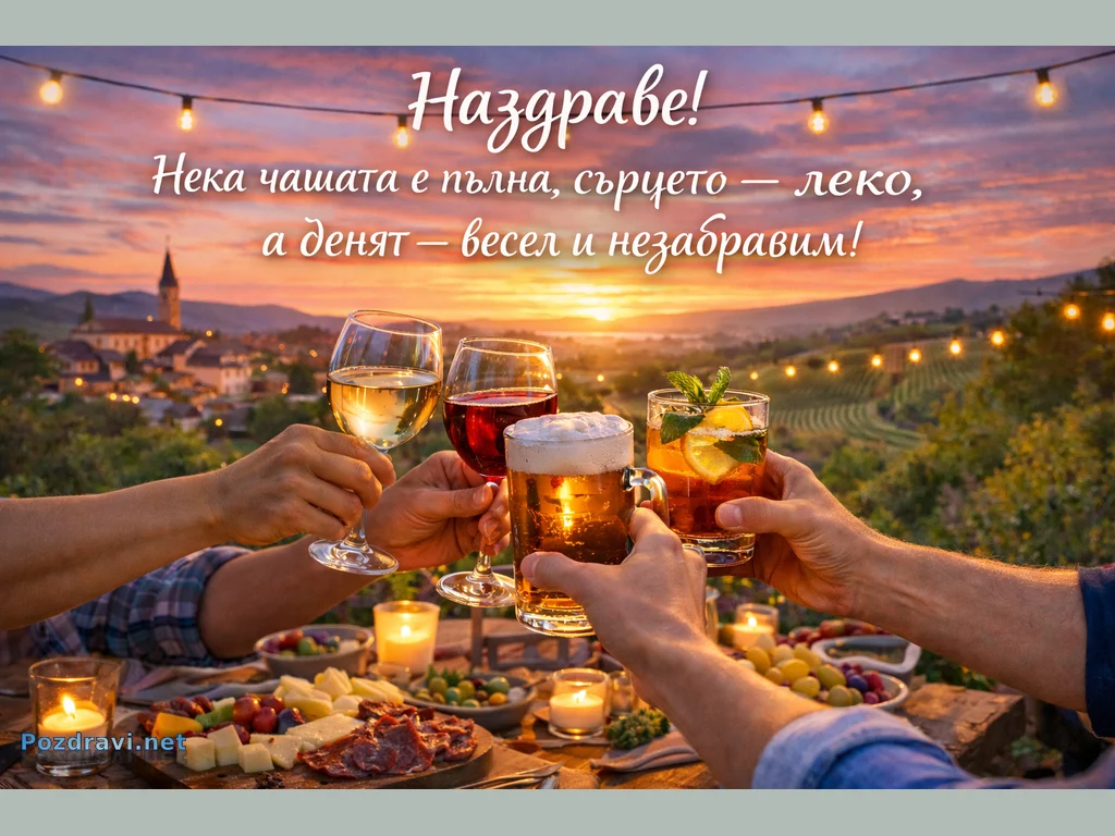 'Наздраве! Нека чашата е пълна, сърцето – леко, а денят – весел и незабравим!'