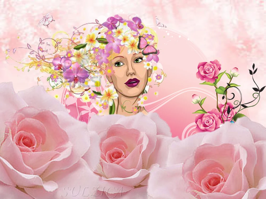 Ключови фрази: Картичка поздрави пролетни пожелание празник всички хора красота любов нежност жена цветя пеперуди разцъфнали рози нов живот ражда