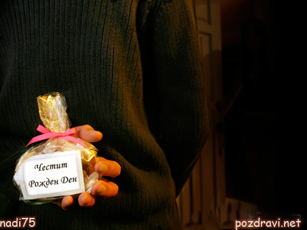 Ключови фрази: бонбони, мъж, жена, Честит рожден ден, подарък, картичка, поздрав, изненада