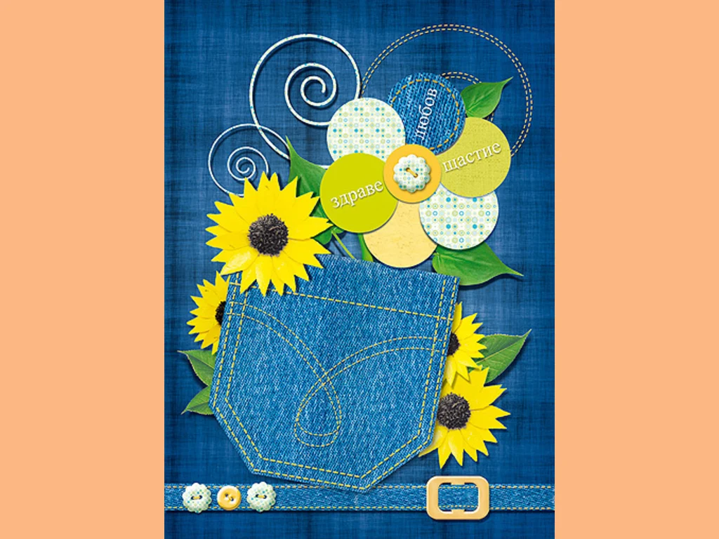 Ключови фрази: Абстрактна картичка цветя слънчогледи здраве щастие любов