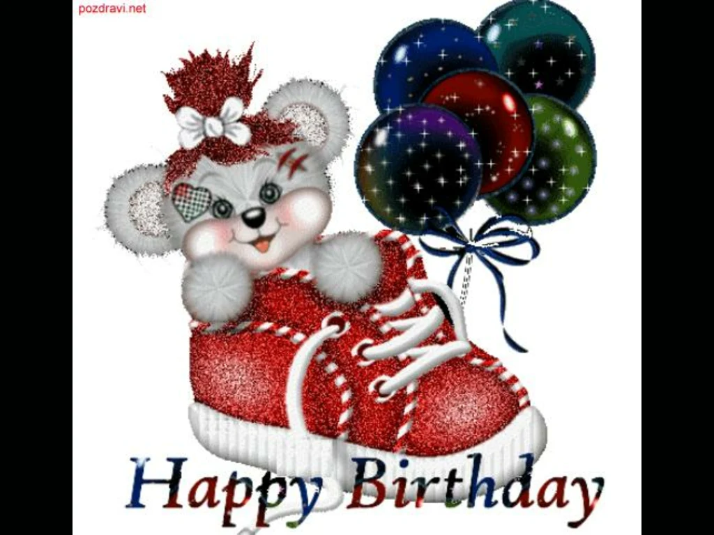 Ключови фрази: Щастливо красиво малко мече мишле обувка балони рожден ден поздрави пожелание