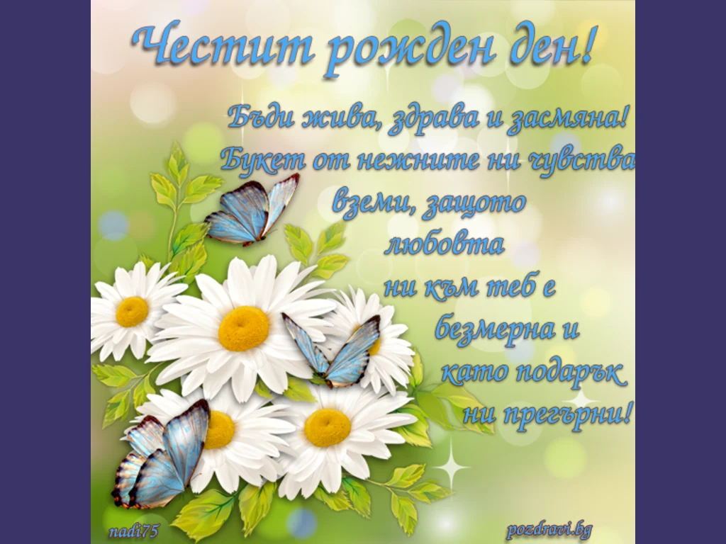 Ключови фрази: рожден ден маргаритки пеперуди зелен блясък