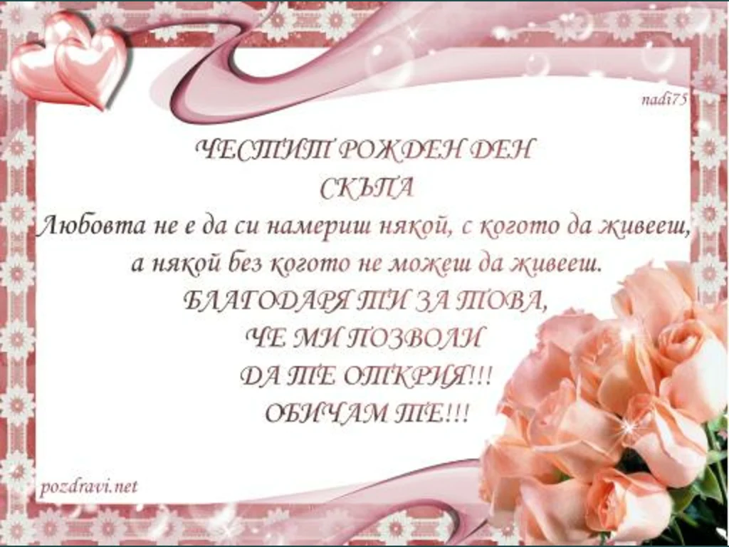 Ключови фрази: Пожелания рожден ден скъпа открита полувинка приятел поздрав изкренни поздравления перли букет рози сърца картичка