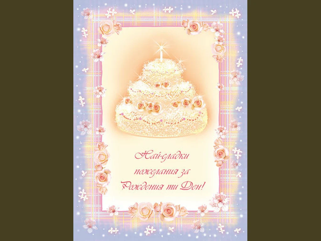 Ключови фрази: Триетажна торта свещичка горяща сметана розички нежност красота рожден ден поздрави пожелание картичка