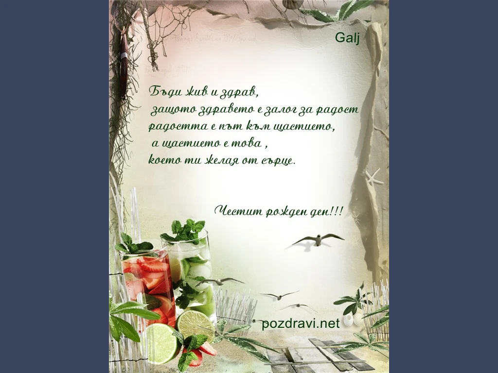 Ключови фрази: Картичка поздрав пожелание живот здраве радост щастие любов интимност два красиви коктейла цветя лястовичка