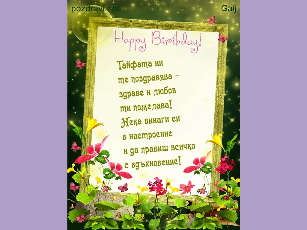 Ключови фрази: Картичка пожелание тайфа поздрав настроение вдъхновение здраве любов пеперуди цветя балони звездички магическа красота щастлив рожденден