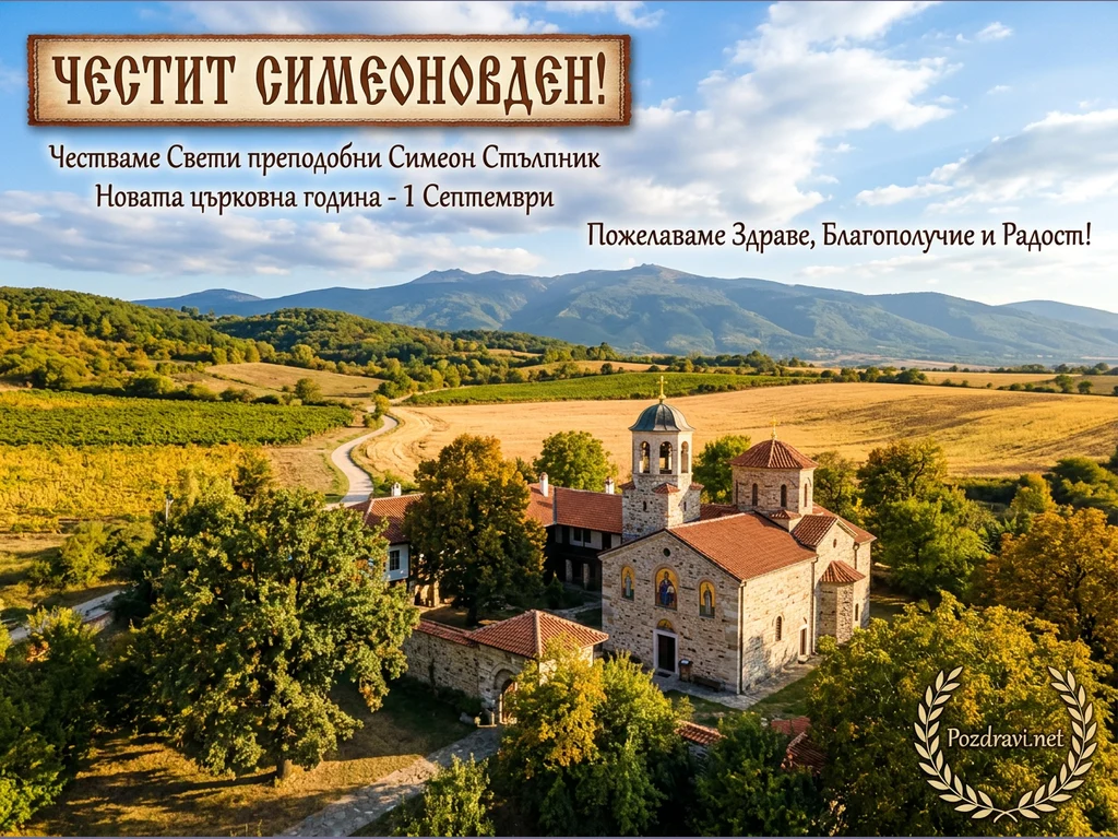 Ключови фрази: Симеоновден, Български манастир, Православен празник, Поздравителна картичка, 1 Септември